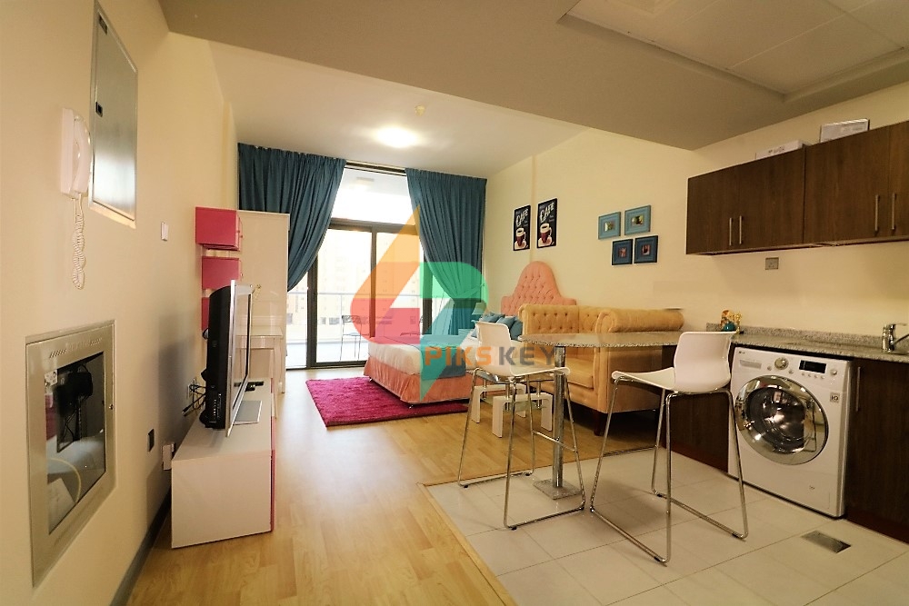 BINGHATTI APARTMENTS, DUBAI SILICON OASIS (DSO) This air-conditioned apartment features a large balcony with community view and free Wi-Fi access all throughout the property. This bright, spacious Studio Apartment is equipped with flat-screen satellite TV, sofa, and a kitchen that comes with an oven, an electric kettle, a washing machine, a microwave, and a refrigerator.