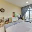 Offering this modern and spacious Studio Apartment features a balcony with community view and free Wi-Fi access all throughout the property. Apartment is equipped with flat-screen satellite TV, sofa, dining area, king size bed and a kitchen that comes with an oven, an electric kettle, a washing machine, a microwave, and a refrigerator.