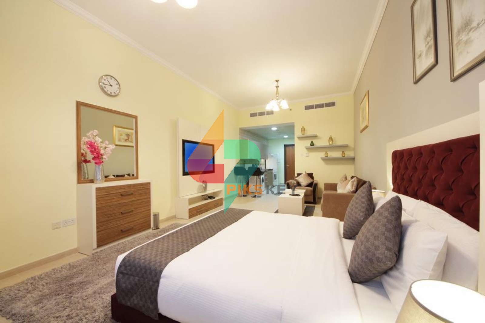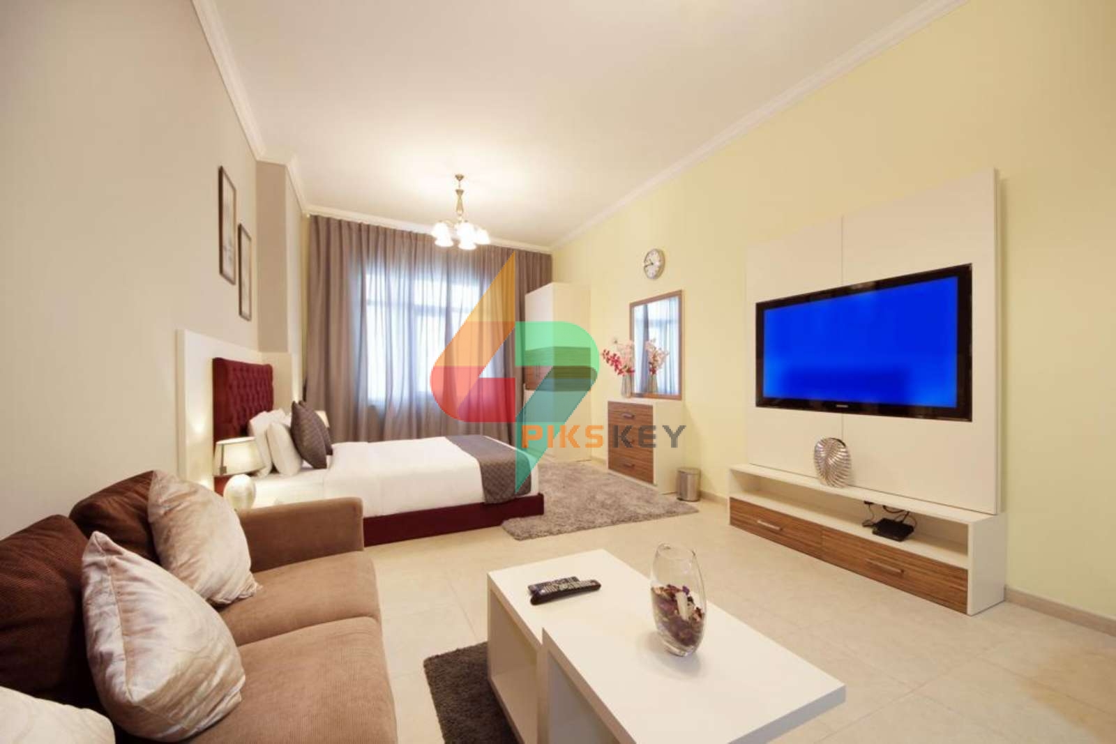 This elegant, spacious Studio Apartment features a balcony with community view and free Wi-Fi access all throughout the property. Apartment is equipped with flat-screen satellite TV, sofa, dining area, king size bed and a kitchen that comes with an oven, an electric kettle, a washing machine, a microwave, and a refrigerator.